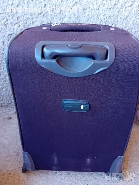Куфар Grand gepard Varna. Цвят кафяв. Размери- височина 62 см., ширина 35см., дълбочина 25 см. Има малък проблем на двете крачета- леко разшит е плата около тях. Това няма отражение върху конструкцията, тя е напълно здрава, както и самите крачета. Механизмът на дръжката работи, всички ципове също. Цената е съобразена с проблема.