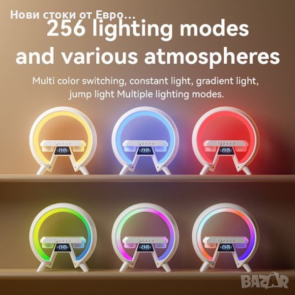 Мултифункционалност: Smart LED лампата е многофункционално решение, което може да се използва за осигуряване на редица функции, като околно осветление, безжично зареждане, възпроизвеждане на музика и много други. Тази умна лампа може да бъде персонализирана според предпочитанията и нуждите на потребителя, за да се адаптира перфектно към пространството и извършваните дейности. Той е не само източник на околна светлина, но също така предлага функция за безжично зареждане, Bluetooth високоговорител, възпроизвеждане на музика, нощна светлина, часовник с цифров дисплей, двойна аларма със симулация на изгрев и други функции. Тази интелигентна LED лампа може да се използва по време на работа, учене, четене или сън.