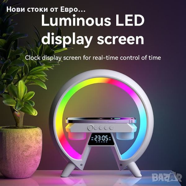 LED лампа с функция за безжично зареждане, Bomstom, Bluetooth, Дигитален дисплей, Температура, Бяла