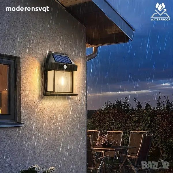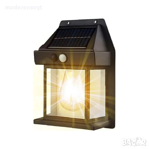 Соларна лампа с двупосочно осветяване за фасада и красив визуален ефект. Тя ще освети атрактивно стената на къщата, външните стълби или оградата на двора. Соларната лампа се зарежда през деня и автоматично се включва през нощта. Тази лампа в модерен стил отнема минути за инсталиране, два конвенционални и удобни метода за инсталиране, единият е да фиксирате лампата за стена с лепящи ленти , другият е да инсталирате с включените винтове.