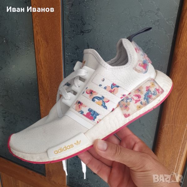 Adidas Her Studio London x Wmns NMD_R1 'Floral White' FY3666,Нови , само пробвани .Перфектни , страхотни за лятото . ПРОГРЕСИВНИ МАРАТОНКИ, НАПРАВЕНИ В СЪТРУДНИЧЕСТВО С HER STUDIO LONDON.Ако говорим за кройки, говорим за HER Studio London. Защото никой не познава моделите по-добре от ръководеното от жени печатно студио. Те го доказват с тези обувки adidas NMD_R1. На фона на чисто бялата горна част, цветни цветя изпъкват от характерните 3-ленти. Емблематичните NMD тапи за междинна подметка също ги показват. Междинната подметка Boost ви осигурява комфорт през целия ден, а смелата външна подметка проблясва още повече, когато сте в движение.Моделът NMD, който не е виждан досега. NMD_R1 са обувки, вдъхновени от маратонките и емблематичния дизайн от средата на 80-те години. Те ще обогатят ежедневното ви пътуване с известните технологии на Adidas. Характерни вложки в стил NMD се открояват отстрани и допълват цялото.Обувки в градски стил с подплънкиОтличителна междинна подметка BoostВталена плетена горна част