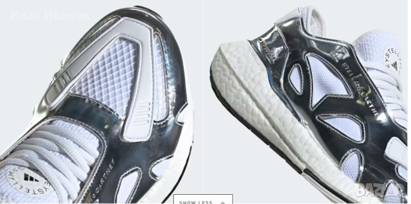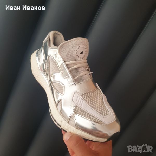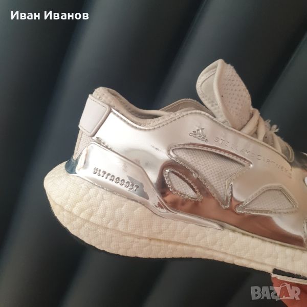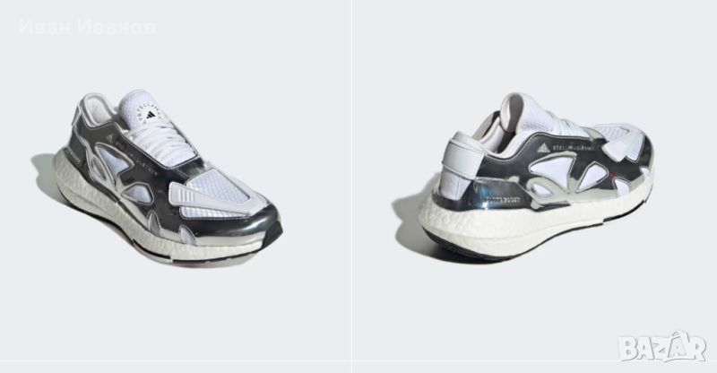 Малко използвани , без следи и забележки . Много модерни , красиви и удобни . Цена по магаизните над 450 лева .Подобрете своя стил и представяне с ниските маратонки adidas by Stella McCartney Ultra Boost 22 в бяло и сребристо. Изработени от устойчиви материали, тези маратонки разполагат с дишаща горна част Primeknit и чувствителна междинна подметка Boost за максимален комфорт и възвръщане на енергията. Елегантният, нисък дизайн и характерните 3-ленти добавят нотка на емблематичен стил, докато издръжливата гумена подметка осигурява отлично сцепление. Прегърнете устойчивата мода и превъзходната производителност с Ultra Boost 22.Изведете представянето си на следващото ниво с маратонките UltraBOOST 22 от Adidas от Stella McCartney, включващи подобрено омекотяване, опора и гъвкава горна част Primeknit, частично изработена от рециклиран материал. Тази разработена маратонка се адаптира към краката ви, като същевременно поддържа издръжливост с междинна подметка BOOST.Продуктът идва от продуктовата линия Adidas End Plastic Waste, които са направени от рециклирани материали.- Специално проектираната горна част adidas Primeknit се адаптира добре към формата на стъпалото, осигурявайки му опора и свобода при движение.- Класическата връзка позволява индивидуално регулиране спрямо крака.- Текстилната вътрешност е удобна за крака и улеснява поддържането на обувките чисти.- Двузоновият дизайн на междинната подметка Boost връща вложената в движение енергия и по този начин поддържа мускулите, което позволява по-продължителна активност. В допълнение, тази технология идеално омекотява стъпалото, позволявайки му да се адаптира оптимално към неравни повърхности.- Подметката е изработена от изключително издръжлива гума Continental™, която благодарение на свойствата си осигурява отлично сцепление както на мокри, така и на сухи повърхности. Неговият специално набразден протектор допълнително повишава стабилността и сцеплението върху различни повърхности.- Дължина на вложката: 24.5см.- Дадени размери за размер: 39 1/3.
