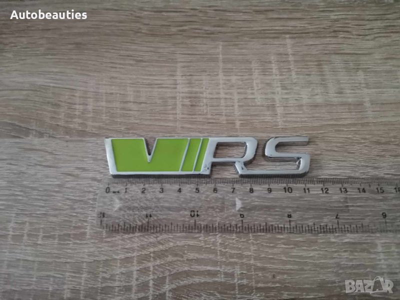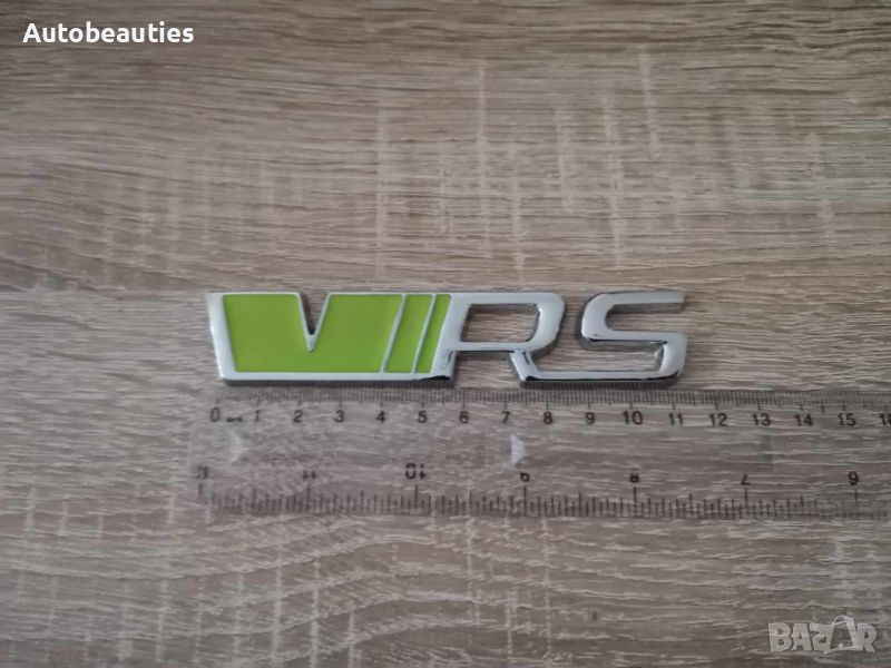 нова емблема за Skoda VRS в най-новата разцветка - отровно зелено и сребристо. Размерите са 11 см х 2 см. Цената е за 1 бр.