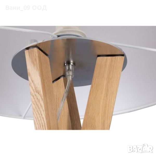 Елегантен лампион с дървена стойка и бял текстилен абажур, 1х40W, E27, 45/160 см
