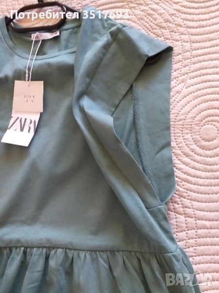 Страхотна дамска рокля Zara по етикет размер S , но е Over size ,спокойно и заS/M , малък М. Нова