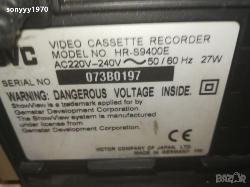 JVC HR-S9400Е SUPER VHS-MADE IN GERMANY-HIFI STEREO-РАБОТИ ИДЕАЛНО МАХАГОНОВИ СТРАНИ ВИСОК КЛАС-ЖЕСТОКИ ИНДИКАТОРИ-КРАЙНИ ЦЕНИ.ПАЗАРЛЪЦИ НЕ! пращаме със спиди или еконт с преглед и тест след превод на капаро за куриерската услуга поради зачестили некоректни потребители-поръчки само тук в саита! по телефона и със смс не! краини цени! бартери не правиме! ПАРИ НЕ ВРЪЩАМЕ! всеки ден нови неща-още 2-3 наши обяви тук