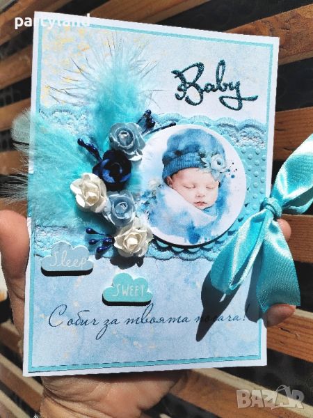Луксозна картичка/ плик за пари за бебе подарък за погача → Обява 46593603