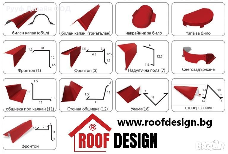 Възможност за изработка на всички необходими завършващи покривни елементи по размер на клиент.