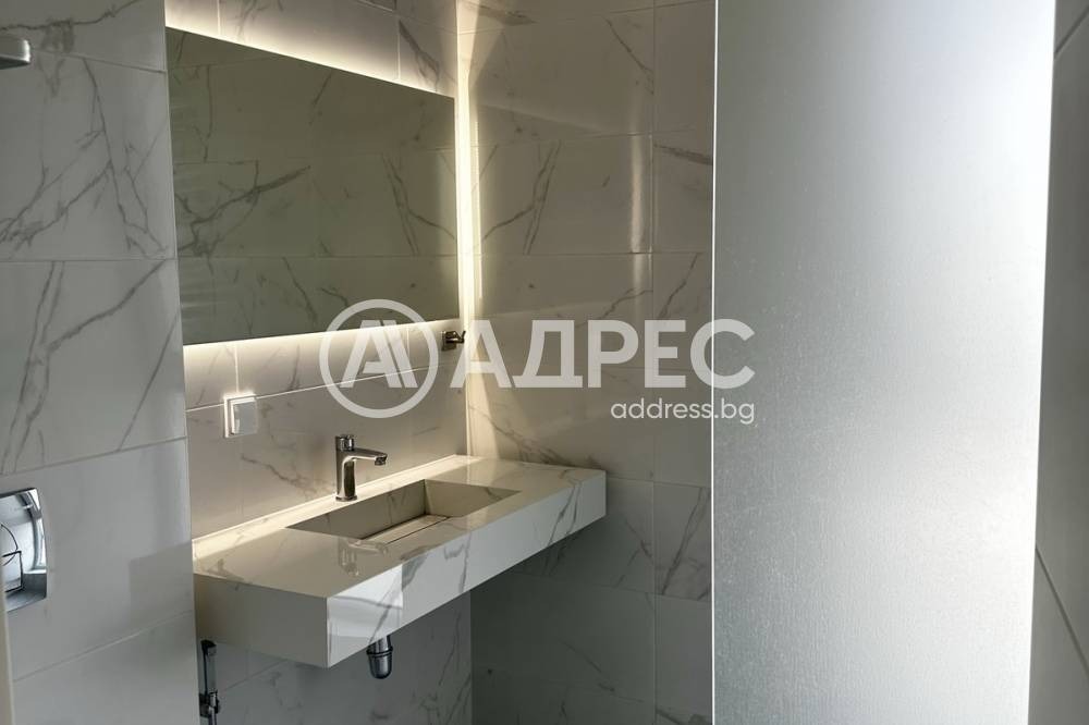 Банята е оборудвана с вграден душ Palazzani, смесител Lamborgini , структура на Geberit, лира за топъл и студен въздух.