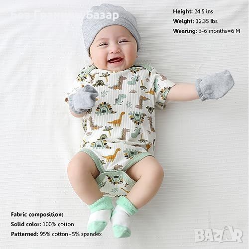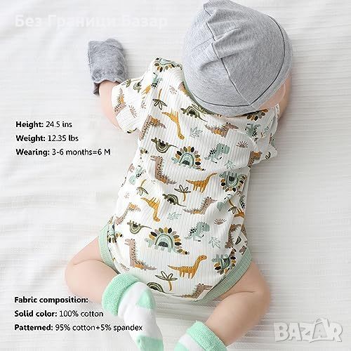 Нов Комплект Бодита за Новородени 5 Броя Къс Ръкав 6-9 месеца бебе момче