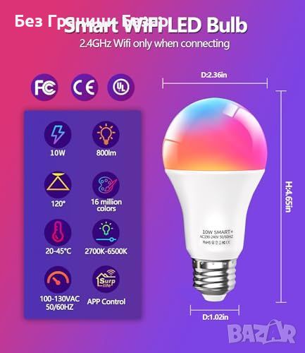 Нова 10W E27 смарт крушка, WiFi, музикална синхронизация, гласов контрол