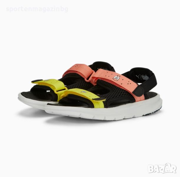 До всички фенове на Спондж Боб Квадратни Гащи. Пригответе се за приключение с медузи в тези напълно лицензирани сандали от PUMA, допълнени със забавни каишки на Спондж Боб и Патрик. Закопчаването им, ги прави лесни за обуване и събуване а в същото време са изключително леки и дишащи, благодарение на мрежестата горна част.