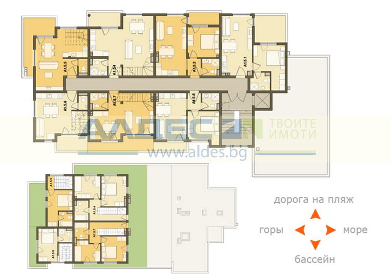 ОТ ИНВЕСТИТОР! МОДЕРЕН МЕЗОНЕТ в ЛУКСОЗЕН КОМПЛЕКС, на 150 м. от морския бряг, в един от най- предпочитаните курорти: Свети Влас, в средиземноморски архитектурен стил, с басейн-с олимпийски размери, прекрасна градина с изглед към морето, детски кът. В непосредсвена близост до центъра на Свети Влас /800 м./, стария град на Несебър /ЮНЕСКО/, СПА комплекс, ресторант и магазин, тенис корт. Тухла от 2013 г. РАЗПРЕДЕЛЕНИЕ: етаж 5 от 6-етажна сграда; ЗП 72,80 кв.м.; Първо ниво: дневна с трапезария и кухненски бокс, тераса, баня с тоалетна; Второ ниво: две стаи, баня с тоалетна; входна врата от MDF естествен фурнир, луксозен обков, напълно окомплектована по хотелски стандарт модерна баня с душ-кабина, изводи за кабелна телевизия и интернет, WI-FI-покритие на цялата територия на комплекса, изглед към Стара планина и морето. ПОДОВИ НАСТИЛКИ: фигурален теракот и гранитогрес и висококачествен ламинат. ПВЦ 3-камерна немска дограма с двустранно отваряне. ОТОПЛЕНИЕ: ток/климатик. Безплатно паркиране. Такса поддръжка: 9,60 евро/кв.м. Предлагаме и други апартаменти в района. ЗА ПОВЕЧЕ ПОДРОБНОСТИ И ОГЛЕДИ: оферта А4633 А1 5.4