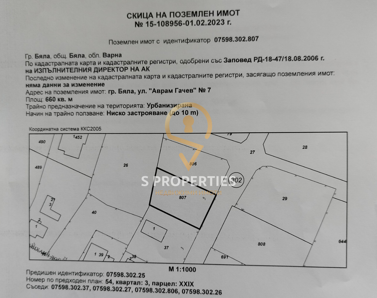 Агенция за недвижими имоти 'S PROPERTIES' предлага за продажба ЕКСКЛУЗИВНО парцел в гр. Бяла, района на Гръцката махала.