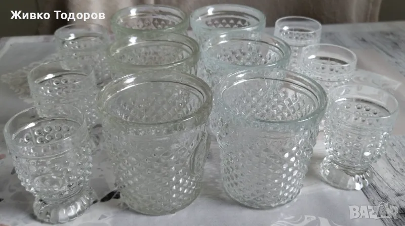 Комплекти дебелостенни чаши от стъкло за ракия/аперитив и десерт.сервиз Перла (1977г.Либоховице) → Обява 46598477