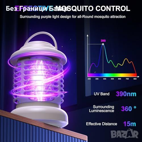 Ефективен улов на комари: 390nm UV светлина, 360° действие, до 15м