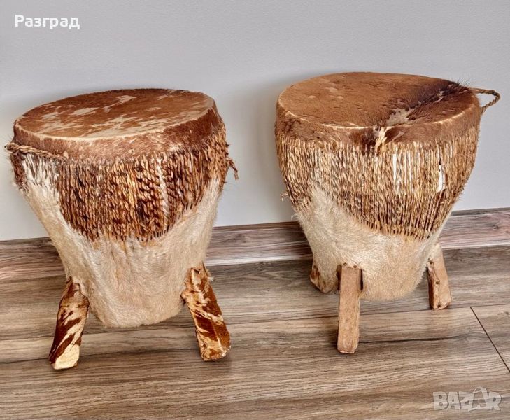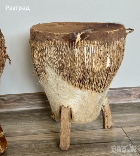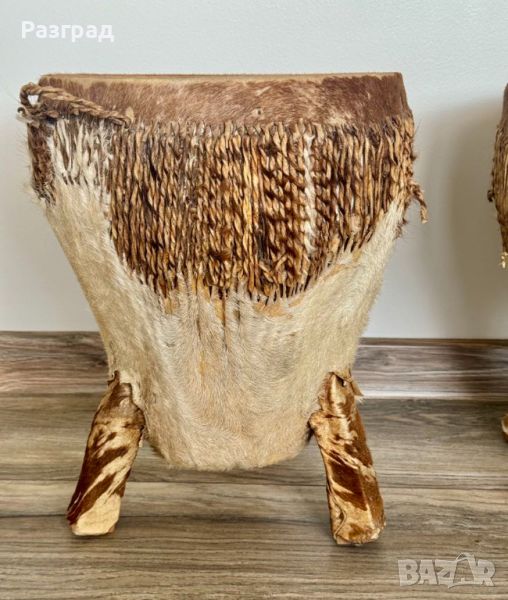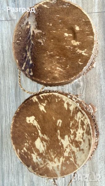 2 броя барабани ръчно изработени от дърво, метал и естествена кожа (коза ) Традиционно изкуство от източна Азия, Кения. В добро винтидж състояние, имат известни следи от употреба и износване по кожата. Височина 40см. , диаметър 30см. Цената е за двата барабана.