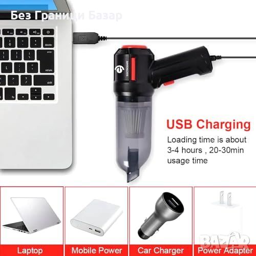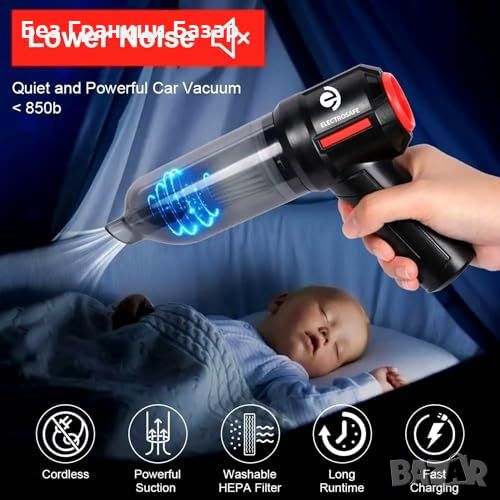 Нова Безжичнаа прахосмукачка с 8 аксесоари, 9000PA всмукване за кола дом