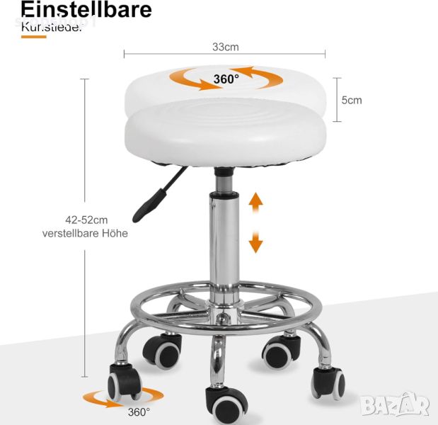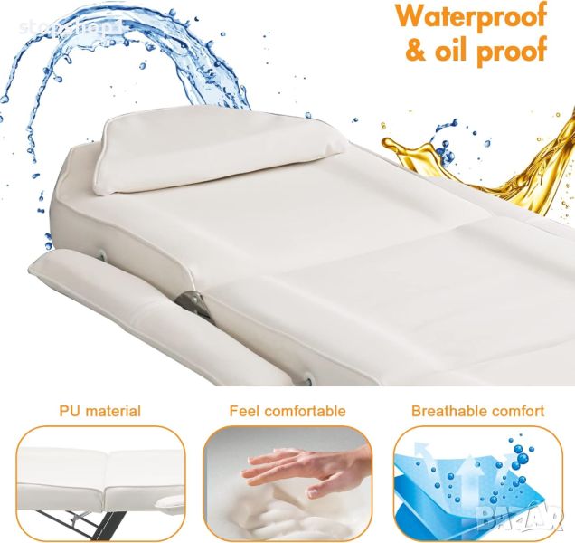 - 🪑Масажна маса с табуретка - Масажната табуретка се върти на 360 градуса, така че можете лесно да променяте посоката напред и назад, ако е необходимо. Издръжливата възглавница на седалката от синтетична кожа с дебелина 5 см осигурява комфорт.