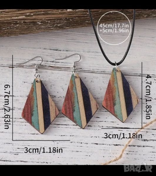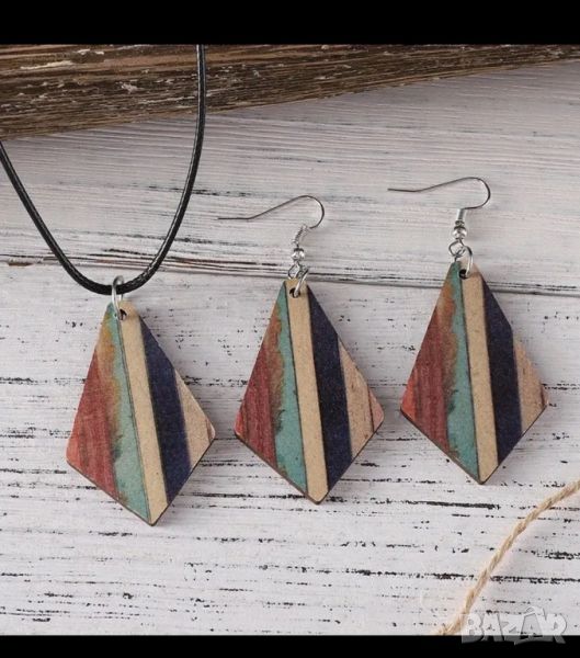 Комплект колие и обеци с дървени мъниста и диск в бохемски стил - идеален за ежедневието и празниците.