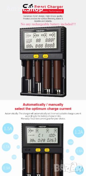 LGIDTECH C4 MiBOXER Smart Зарядно устройство за батерии 4 слота LCD дисплей Li-Ion, IMR, INR, ICR, N