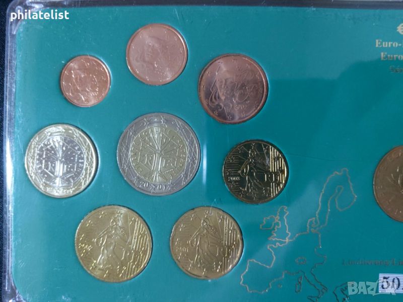 Франция 1999-2003 - Евро сет - комплектна серия от 1 цент до 2 евро + 1 франк 1960 → Обява 46601899