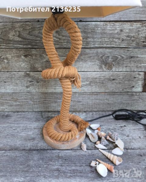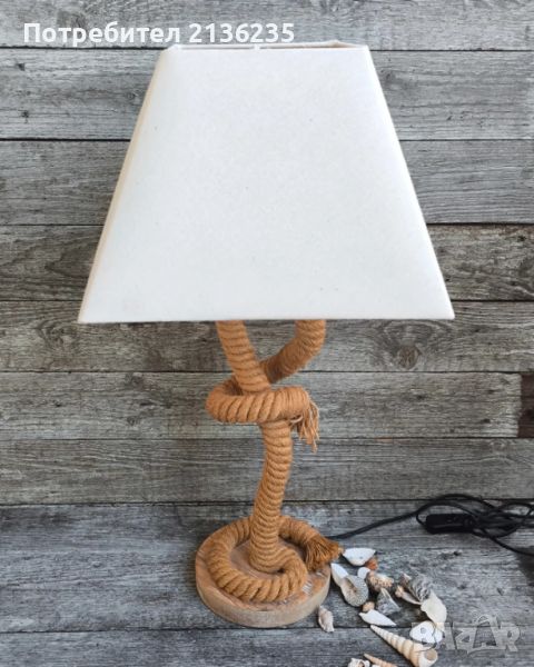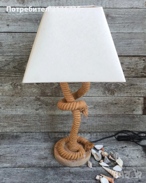 Настолна лампа с основа направена от усукано въже което създава готин и уникален морски дизайн