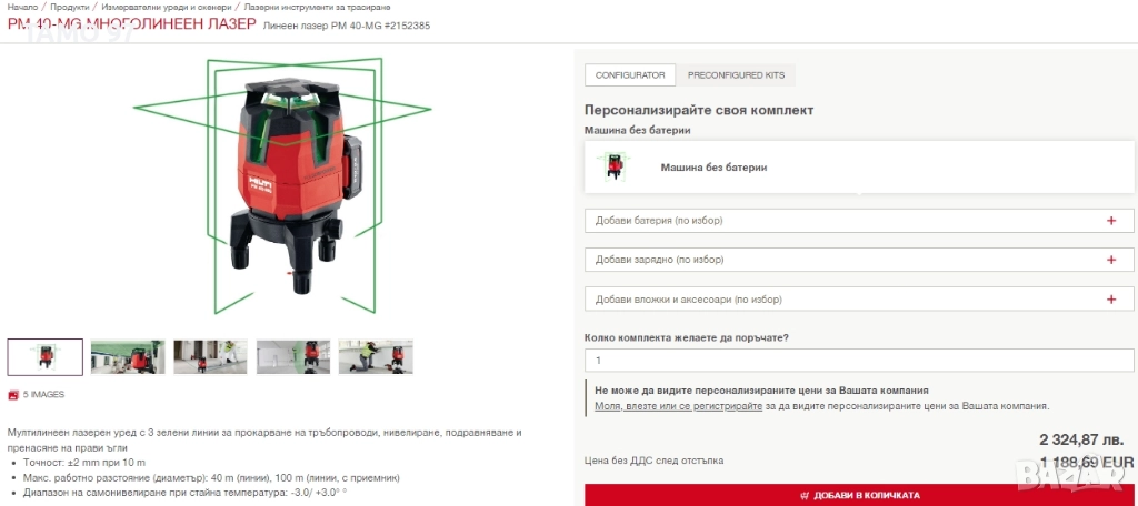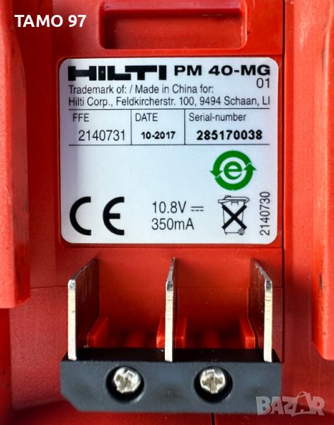 Хилти. Лазера е в много-добро визуално състояние също така работи и функционира отлично. Обявената цена включва това което е на снимките само лазера със стойката без батерии и зарядното.