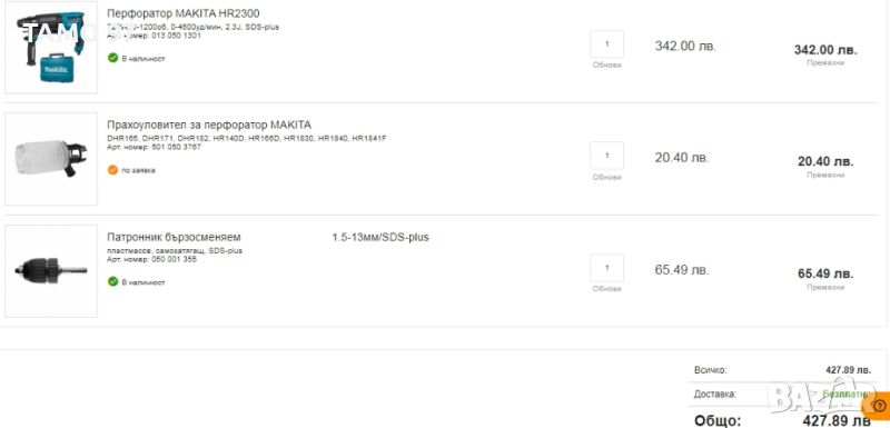 Магазинската цена на комплекта е: 428лв.