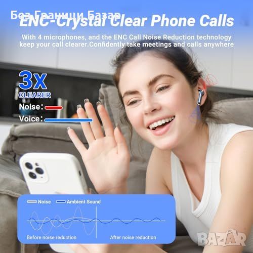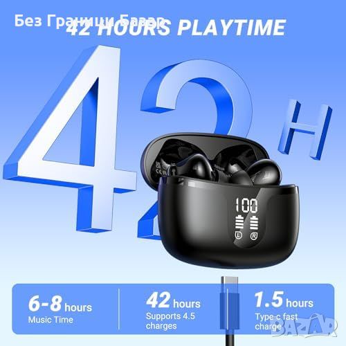 Нови Безжични слушалки Bluetooth 5.3, 50 часа възпроизвеждане, ENC шумопотискащи