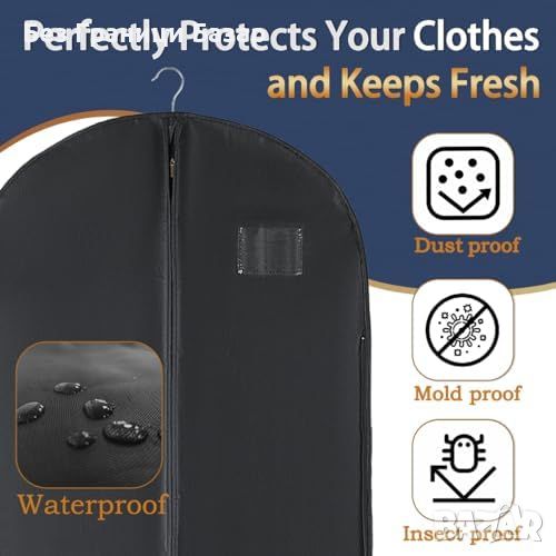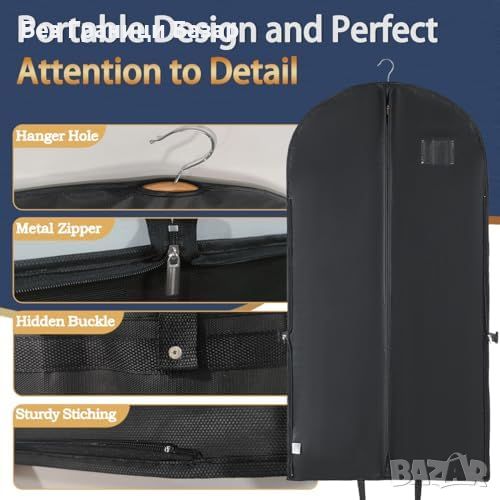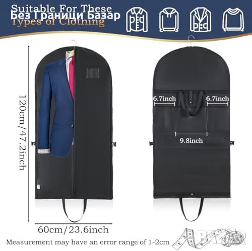 Елегантен черен калъф за костюми (120 см x 60 см), идеален за дълги пътувания или бизнес пътувания.