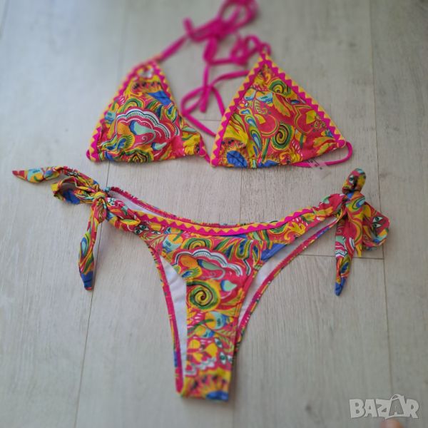 Страхотен многоцветен бански, на който много ще му отива тен. По етикет е М размер, но тъй като се регулира с връзки навсякъде може да стане и за Л размер.