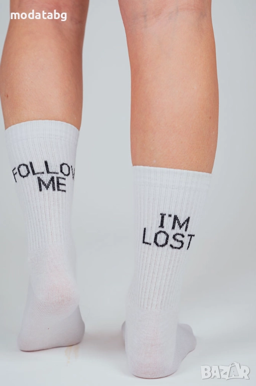 Чорапи със спортен ластик и надпис FOLLOW ME/I'M LOST → Обява 46606451