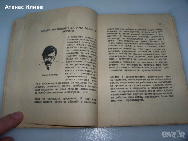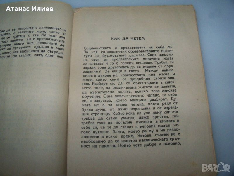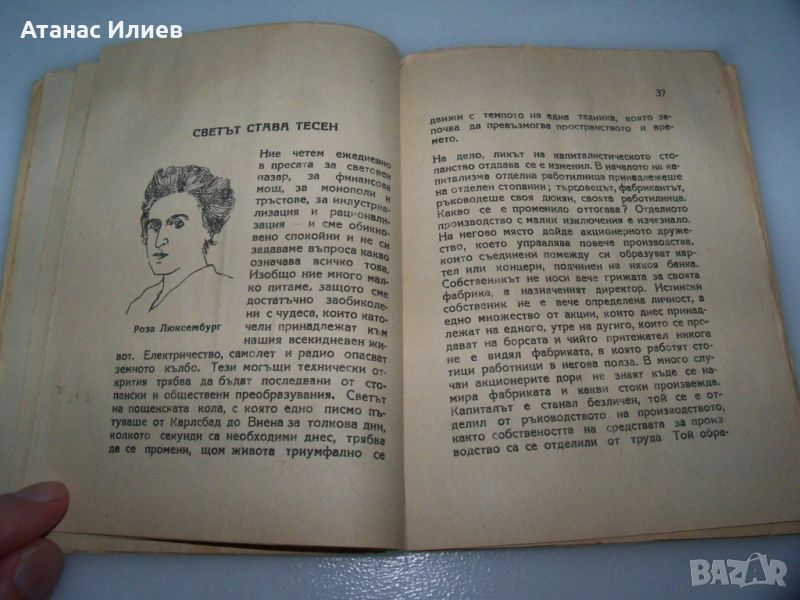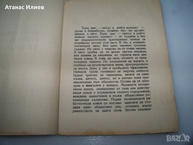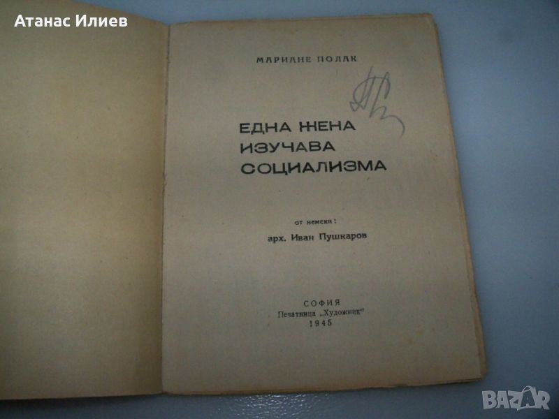 "Една жена изучава социализма" книга от Мариане Полак. Книгата е издание на ССМ - съюз на социалистическата младеж, преводач арх. Иван Пушкаров. Книгата е 64 стр. меки корици, отпечатана в печатница "Художник" през 1945г.