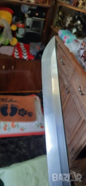 Качествена изработка със внимание към детайла!Ръкохватката е 35 смДължина на острието 72 смШирина на острието-3 смДебелина на острието в горната част-7 ммТеглото му е към 1.2 кгNagasa /blade length- 70.2cmMotohaba- 3.2cmMotokasane - 0.74cmSakihaba - 2.65cmSakikasane - 0.54cmNakago Length -35cmSori/curvature - tori sori 1.8cmkissaki -4cmTsuka Length - 26cmСтомана t 10 със истински хамон!Купуван е от Китай от реномирана ковачницаНа който му се вижда скъпо моля да прескочи обявата!Не се интересувам от бартери!