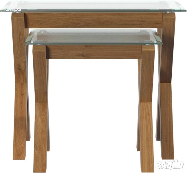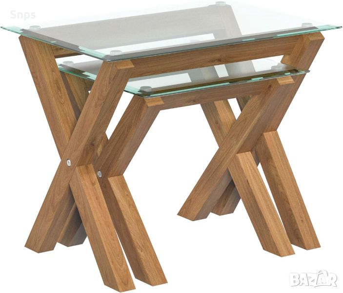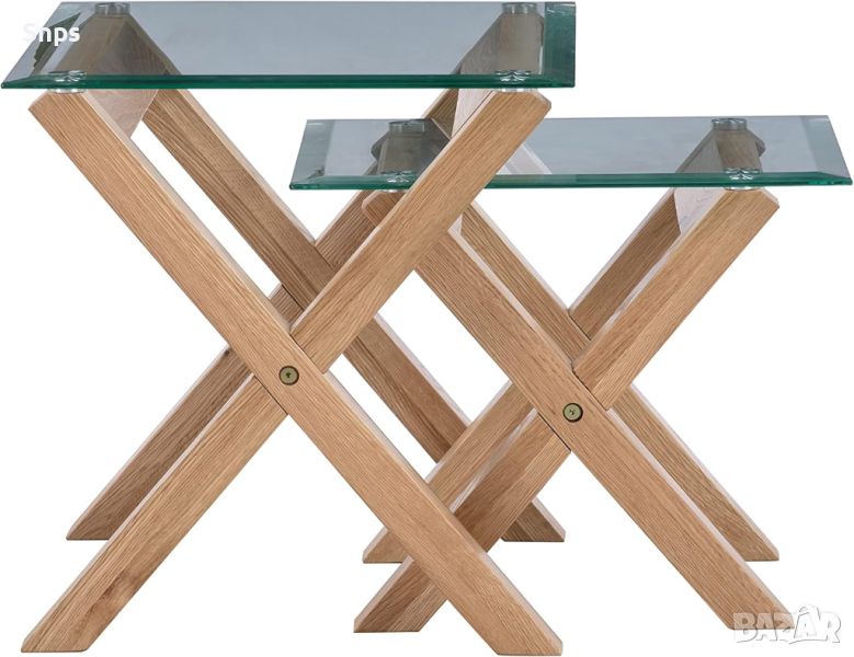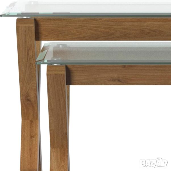 Комплект маси от Дъбово дърво и закалено стъкло 60 x 43 x 44,8/42 x 43 x 36 см