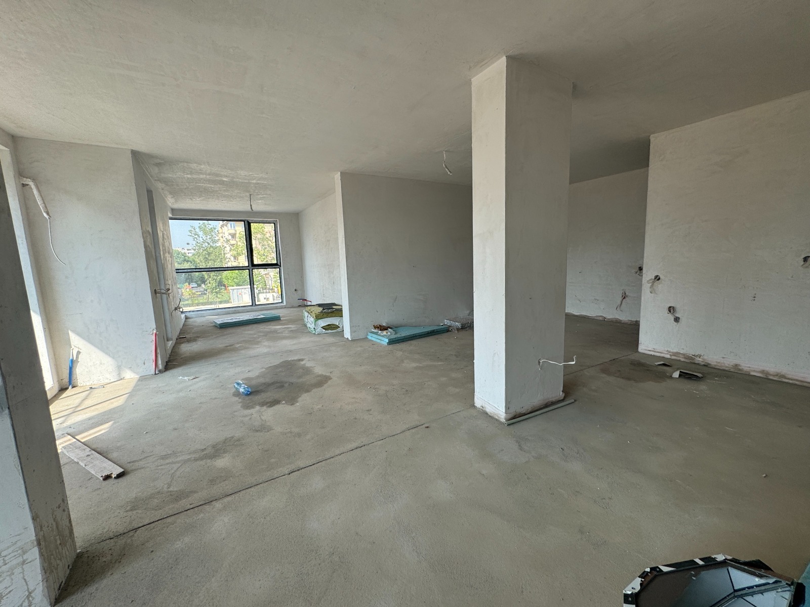Апартамента се състои от голяма дневна 46 кв.м., три спални, две бани и складово помещение. Отопление:газ.Изложение: север/запад.