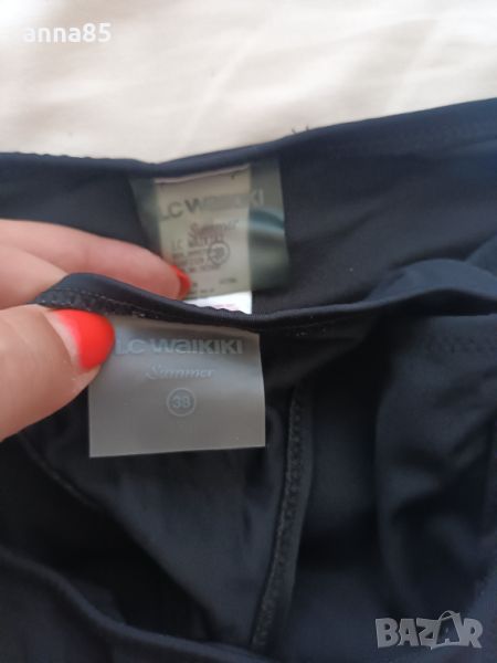 Предлагам този страхотен черен бански, носен от дъщеря ми броени пъти, без забележки. Ефектно горнище с пандела отзад и вградени подплънки. По етикет е номер 38.