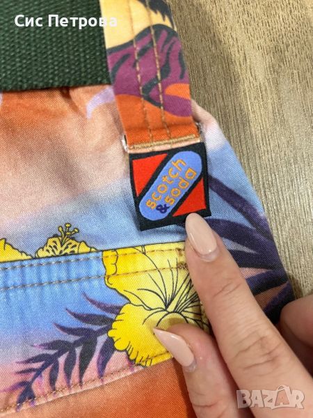 Нови мъжки, къси панталони с етикет Scotch and soda. Наситени и свежи, летни цветове, с които няма как да не останете незабелязани. Има и колан към тях. Размер S. Оригинални.