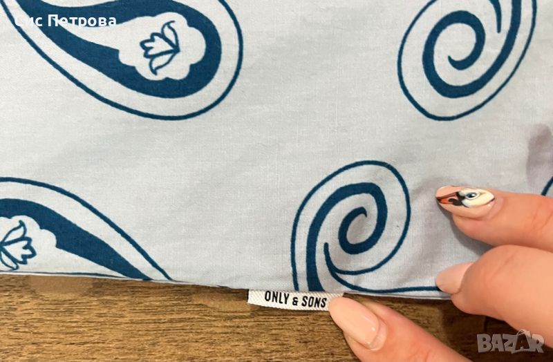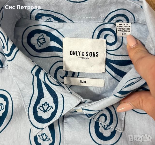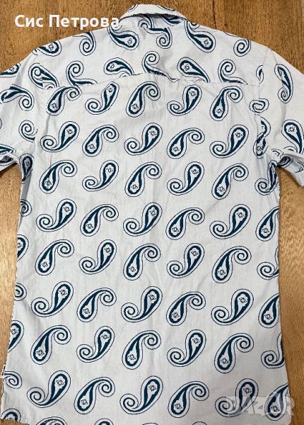 Мъжка риза с къс ръкав Only&Sons. Слим модел. Размер S. Син цвят на тюркоазени орнаменти. Много стилна. Чисто нова, не е носена изобщо, само е свален етикета.