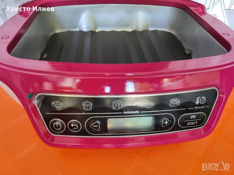 Чисто нов, работи без проблеми. Няма забележки. Приложени са реални снимки.Cake Factory Delices е идеален за споделяне на специални семейни моменти, като гарантира перфектни резултати всеки път, когато става въпрос за кейкове, мъфини, торти, меренги, малки или големи торти... .дори получаване на традиционен домашен крем! С Cake Factory Delices приготвянето на пухкави торти и вкусни десерти е лесно, благодарение на 5-те автоматични програми с интелигентен контрол на температурата. За повече свобода и креативност се възползвайте от ръчния режим. С интелигентен, лесен за използване дизайн, той елиминира предположенията за печене, което го прави идеален за използване от „малките помощници“ на семейството. Всичко, от което се нуждаете, за да започнете, е включено в продуктовата кутия: тава CREABAKE, 6 форми за мъфини CREABAKE, 6 форми за мини кейкове CREABAKE, метална скара, както и книга с рецепти и кратко ръководство за потребителя. Можете да откриете над 100 идеи за рецепти стъпка по стъпка и в мобилното приложение! С щедро място за готвене, но с компактни размери и лесен за съхранение, този уред за печене ще вдъхнови цялото семейство!Възможност за миене в съдомиялна машина: Dishwasher compatible platesВътрешно покритие: Non-stickМощност, W: 1100 WНастройки на температура: 5 automatic programs (cakes to share, individual cakes, flowing hearts, meringues, cream desserts) and 1 manual programЦвят: White &