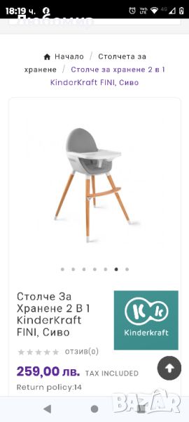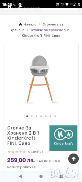 Столче За Хранене 2 В 1 KinderKraft FINI, Сиво