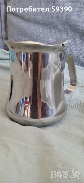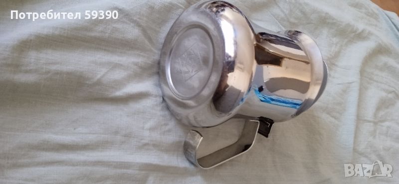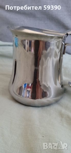 Използвана стоманена латиера(каничка за мляко),нещо като нашето алпака,но по-здраво. Практически ще остане за поколенията. Може да се използва и за чай и т.н.Произход : Италия. Височина:!13 см.ширина без дръжка:11 см . С дръжка:16 см.Вместимост :700 мл. Единствен брой. Цена:30 лева.За София може на лично предаване.Ще публикувам и другаде.
