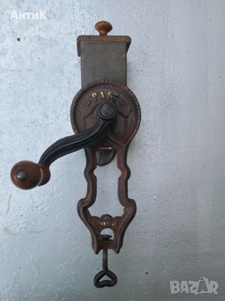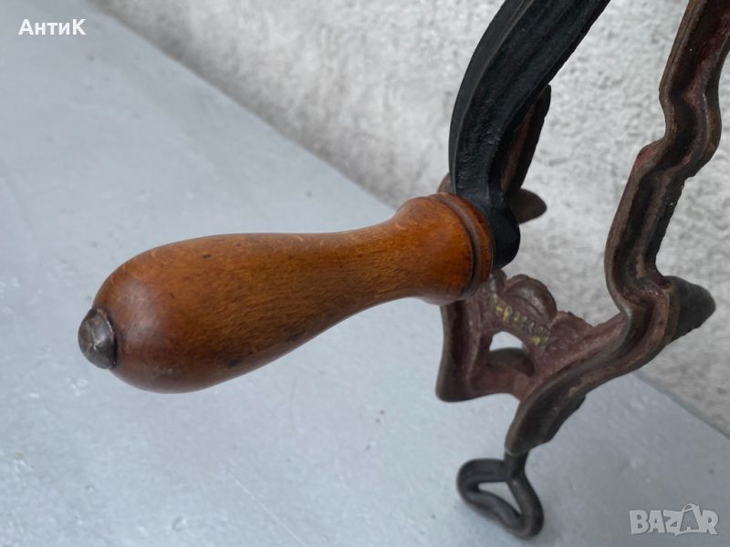 Сто годишна мелачка за орехи от началото на миналия век. Отлично състояние, работеща. Много красива изработка. Чугунена основа.