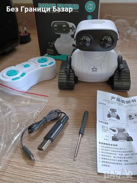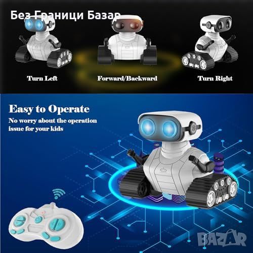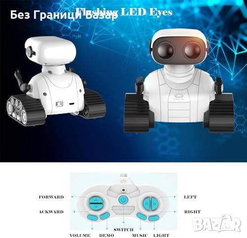 Интерактивен смарт робот: LED очи, регулируеми ръце, декорация с танкови вериги.