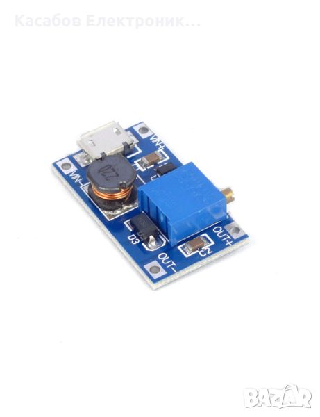 Преобразувател, повишаващ напрежението в диапазона от 4V до 28V DC. Има микро USB порт и вграден потенциометър за плавно регулиране.
