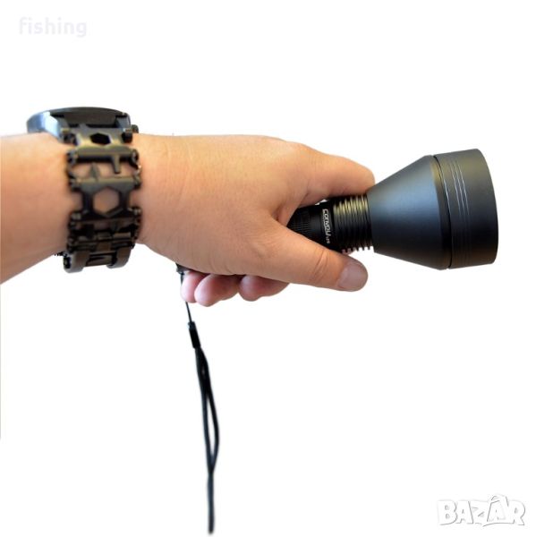 Dulotec L21B е масивен фенер с увеличена далекобойност и намалено тегло, изключително подходящ за подцевен фенер. Допълнително като екстра за него има разработен и дистанционен ключ. Фенерът достига 1500 м далекобойност и 1000 лумена сила. Работи с една батерия 21700, 5000мач, включена в комплекта, с която фенерът позволява над 1 час светлина на най-силния режим. Управлението е гъвкаво и може да се настроят 1 режим, 3 режима или повече, според нуждите на потребителя. Тялото е 26 мм, като става за повечето стойки, предлагаме като опция подходящи механични и усилени магнитни стойки.