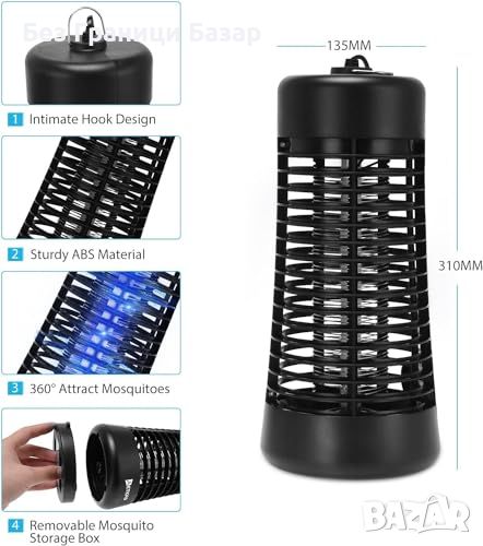 Ефективно унищожаване на комари: Излъчва 365NM ултравиолетови лъчи за привличане и унищожаване на комари, мухи, молци и други насекоми.