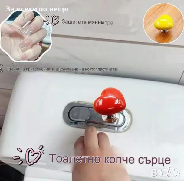 Освежете визията на вашата баня със сърцевидния бутон за казанче на тоалетна. Изработен от висококачествена и устойчива пластмаса, този бутон съчетава стил и функционалност. С размери 3.8 см x 2.5 см x 2 см, той е лесен за инсталация и съвместим с различни модели тоалетни. Перфектен за домове, хотели и салони за красота.