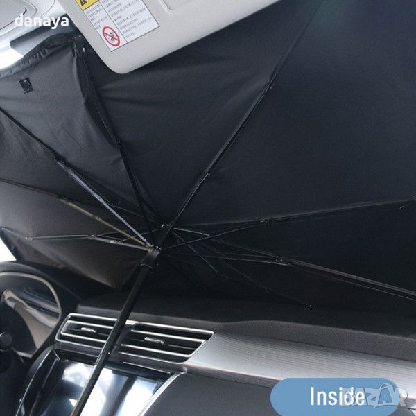 Сенник тип чадър за предно стъкло на автомобил. Не губете повече време да търсите място за паркиране на сянка или да се борите с традиционните сенници. Доверете се на чадър сенник за кола, за да спестите време и нерви и да се насладите на прохлада, дори и в горещите летни дни. Той обхваща цялото предно стъкло на автомобила и не допуска слънчевите лъчи да навредят на таблото, кожения салон, тапицерията или пластмасовите елементи по интериора. Уникалният дизайн на чадъра позволява лесно и бързо поставяне на предното стъкло само с едно щракване на копчето и той се разпъва, като обикновен чадър. А когато вече нямате нужда от него затворете го и го поставете в кожения калъф. Сенникът защитава от UV лъчите и значително намалява температурата в превозното средство без значение дали е бус, автомобил или камион. Материята, от която е направен, предпазва колата от UV лъчите и понижава температурата. Така се намалява риска от напуквания, изхабявания и избледнявания в следствие от силните слънчеви лъчи и високите температури – салонът на превозното средство се запазва и съхранява за по-дълго.